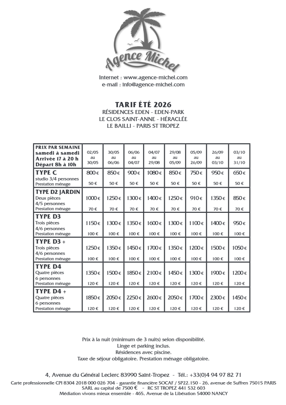 Bel appartement de type 3 pièces d'environ 75 m2 composé d'une entrée, une cuisine américaine entièrement équipée, lave-vaisselle et lave-linge, séjour, télévision, deux chambres séparées (une double et une twin), une salle de douches, WC séparés, balcon. 1er étage. WIFI. Résidence avec piscine. 05 minutes à pied du centre-ville de Saint-Tropez. Coffre-fort. Place de parking privative dans un enclos sécurisé. Tarif D3+ sur grille tarifaire. Forfait ménage obligatoire. Taxe de séjour obligatoire. Numéro mairie : 83119002332HT.